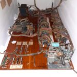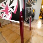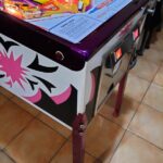I decided when planning this resto to customise it and pimp it up a bit. There are obvious differences and some subtle, the main one being the cabinet colour change in the artwork. The original artwork was yellow and black but I changed it to pink and black to blend better with the rest of the artwork in the playfield and backglass. Also some custom paintwork on the steel rails, lockdown bar and legs, an anodized deep purple with a number of clear coats to really deepen it.