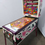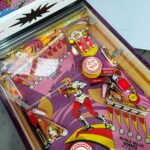 It was quite a job, clear mylar was removed from the playfield then highly detailed. everything was cleaned polished and refitted. Subtle features such as purple flipper rubbers and purple washers on the leg bolts all came together to make this baby sparkle. You will also notice the tilt board painted pink with a decal on it and custom instruction cards. It might not be everyones cup of tea but I am happy with it.
